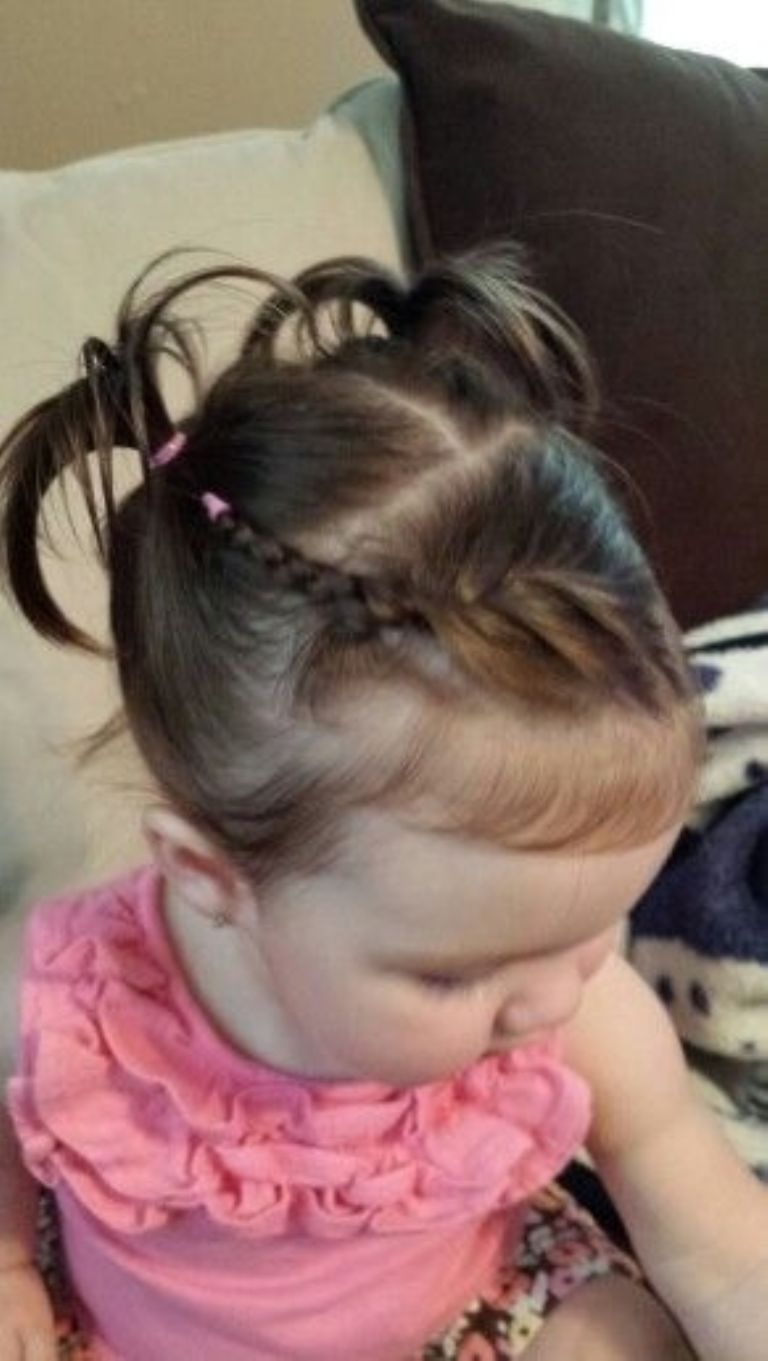 El cabello de tu bebé es fino y delicado, pero muy resistente, si lo tiene un poco largo, puedes optar por hacer unas trencitas con coletas.