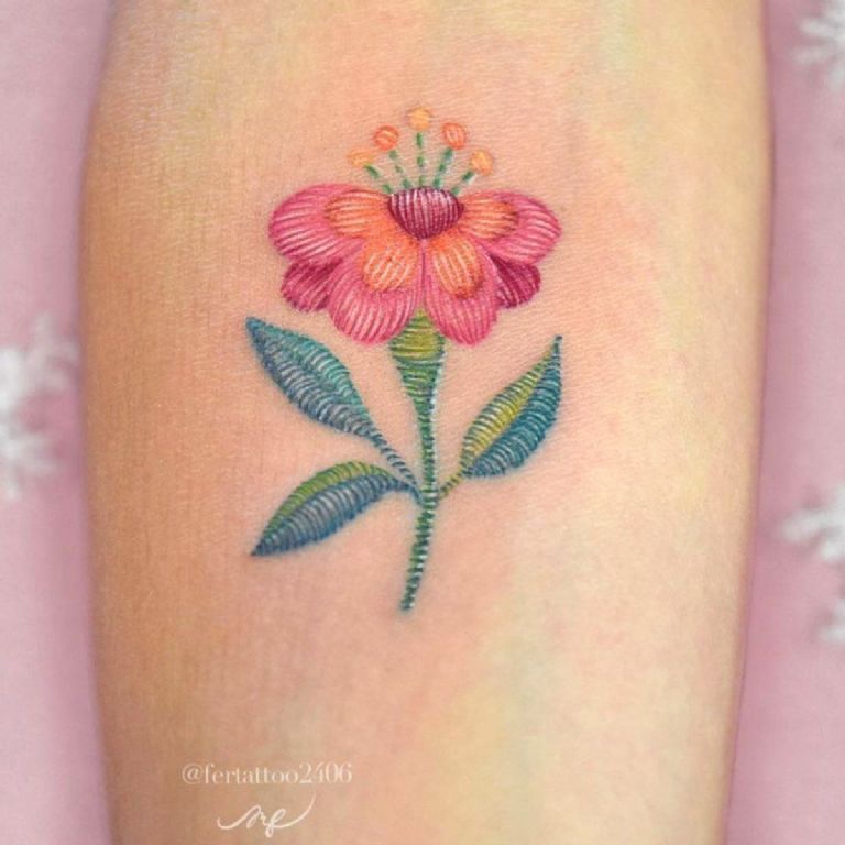 Demuestra tu amor hacia la naturaleza y a la primavera con fantásticos tatuajes de flores en estilo bordado lucirás simplemente fantástica.