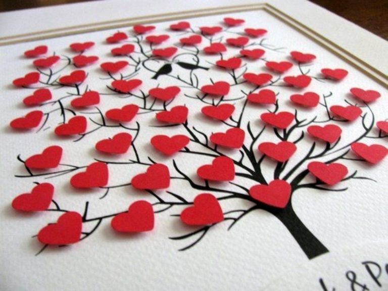 Necesitarás un octavo de papel cascarón, cartulina roja, un marcador, tijeras y pegamento. Solo debes dibujar el árbol en el papel cascarón y pegar los corazones que harás con la cartulina roja, en ellos puedes escribir hermosos mensajes para tu madre en su día.