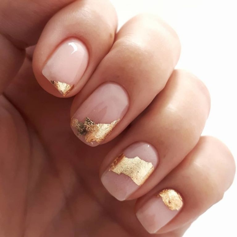 Esta opción consiste en no pintar toda la uña, sino más bien dejar parte de ella con una base trasparente, mientras que una parte tiene un toque dorado, similar al de una hoja quemada.
