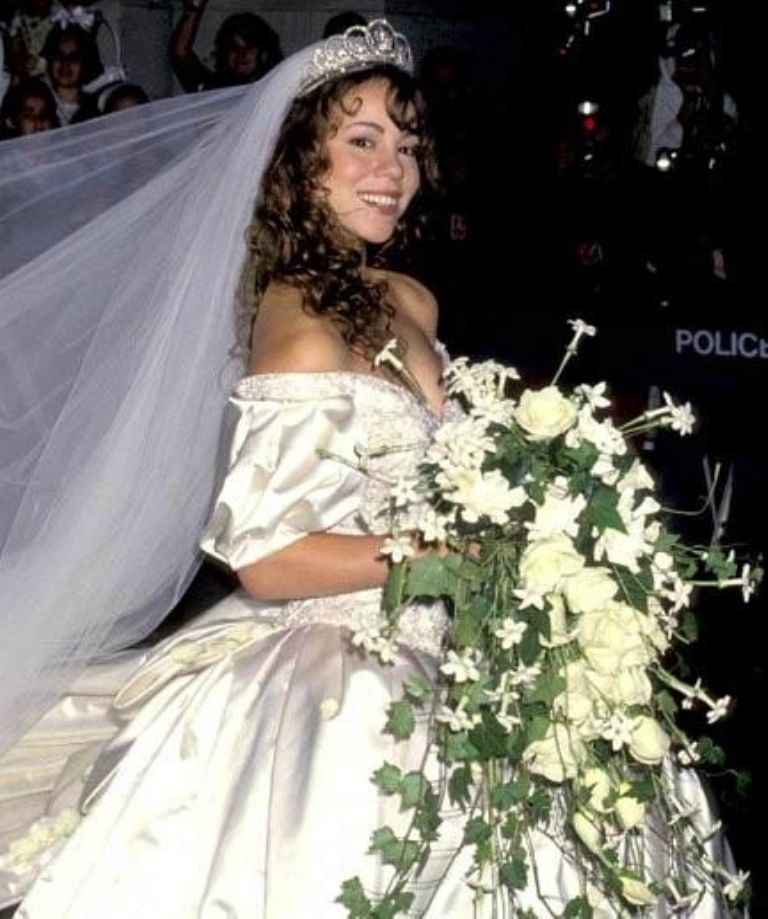 La cantante fue esposa de Tommy Mottola, quien ahora comparte la cama con la mexicana Thalía, sin embargo, para la ceremonia, la ex de Luis Miguel lució un vestido corte princesa que ña dejó sin una relación de cuento de hadas.