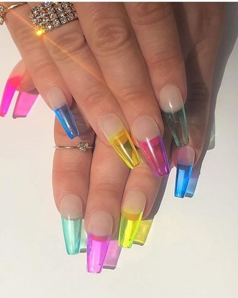 Deja que tu divertida personalidad se muestre en tu manicura al escoger el efecto cristal, pero en colores.