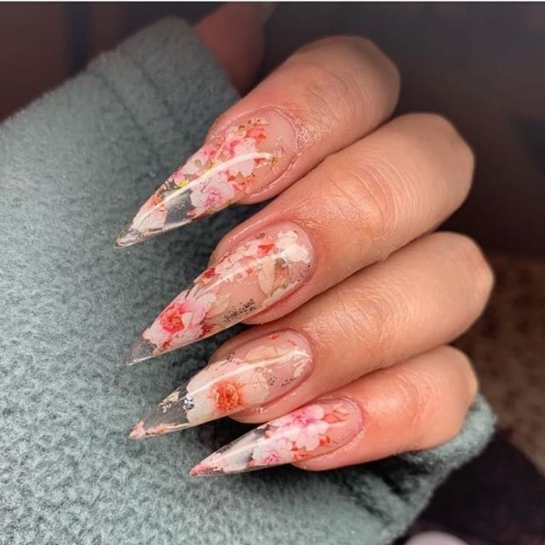 Si quieres mostrarte muy femenina, llevar flores en las uñas será indispensable.