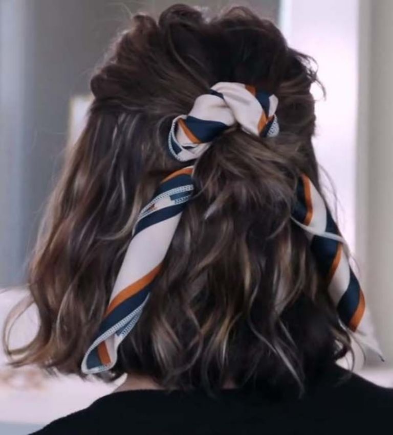 Puede el cabello en cara no sea tu cosa preferida así que logra controlarlo con una linda pañoleta, es idea para los días casuales.