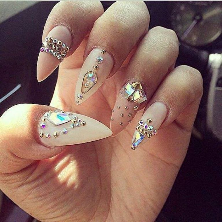 No tengas miedo de llevar la pedrería en las uñas a otro nivel con este tipo de manicuras.