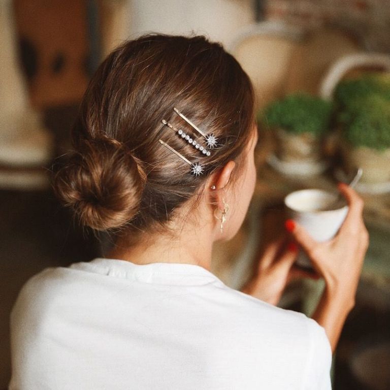Haz que tu cabello se vea ordenado colocando solo unos broches de decoración.