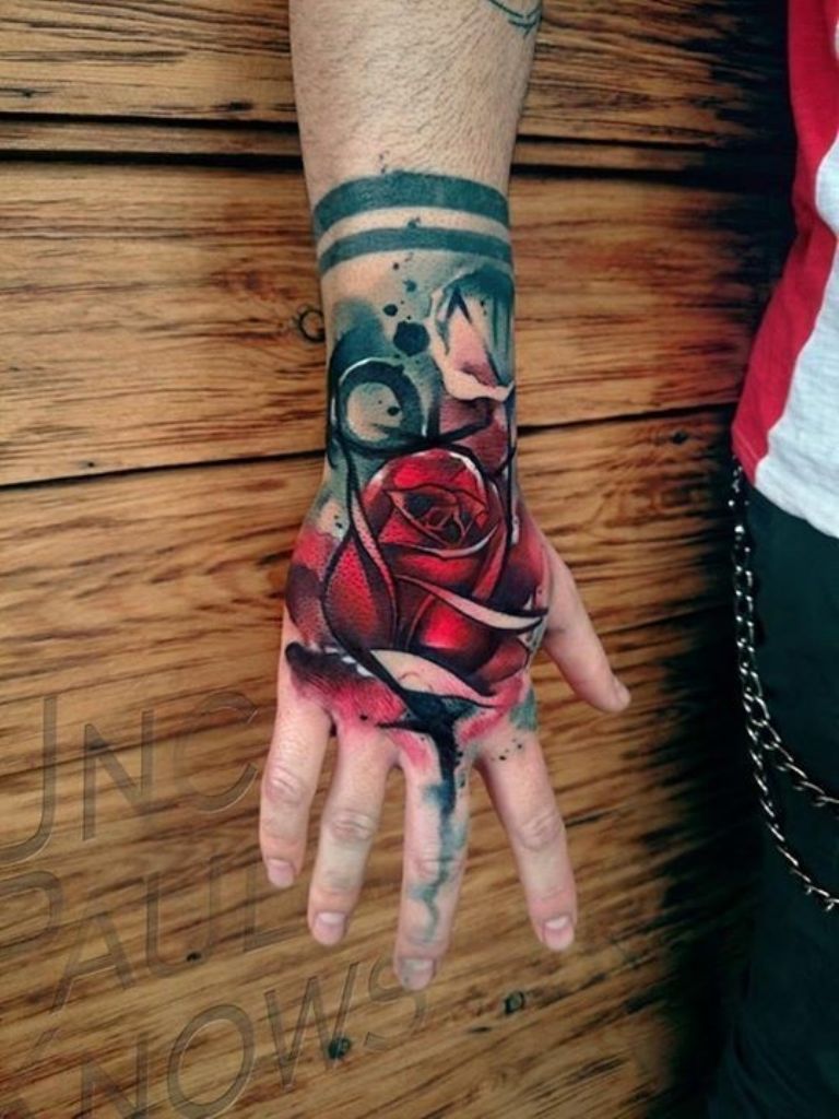 Los tatuajes están hechos para vestir a la piel con aquellos simbolismos que te caracterizan, por ello puedes llevar prendas que realmente no están ahí, como lo es un hermoso guante hecho de bellas rosas.