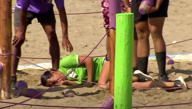 En esta ocasión las dos alineaciones tendrán que jugar una especie de futbol americano, pues estarán peleando por atrapar un tótem, así que se encuentran expuestos al contacto físico, pero Big Fede de los morados se lanzará contra Julieta Grajales dejándola golpeada en el piso y quejándose del dolor que le provocó al darle un fuerte codazo en el rostro.