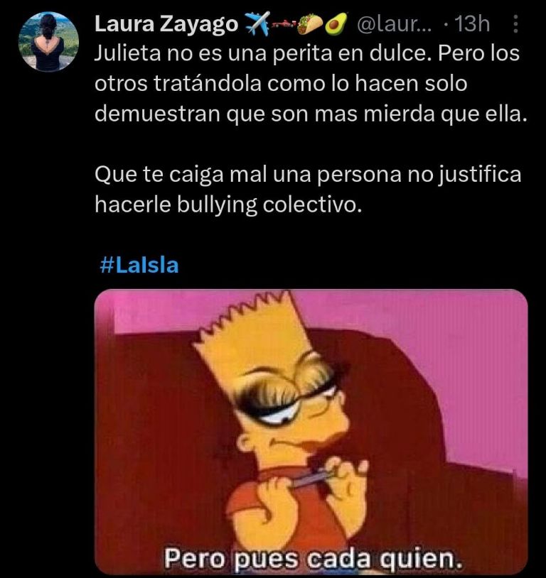 Por esta razón, la red de X explotó luego de que asegurara que todas las malas experiencias que ha vivido Grajales son consecuencia de su karma, por lo que usuarios se lanzaron en su contra con comentarios y memes en los que aseguran que lo que ha hecho es ensañarse, además de que su comportamiento habla más mal de ella que de la exintegrante de los Intensos.