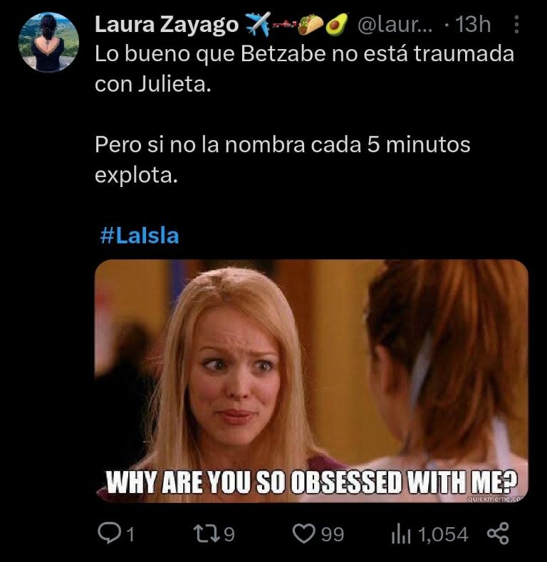 Y es que a pesar de que nunca compartieron equipo, Betsabe no quiere a Julieta y cada que tiene oportunidad vota en su contra, además de que destaca que no es una persona que le gustaría conocer porque no comparte su forma de ser, le hace caras burlescas cada que habla y de alguna forma participa en el odio que han generado muchos hacia la actriz debido a que no es de su agrado.