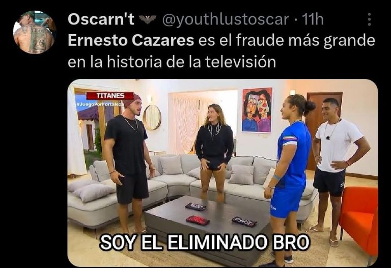 En redes sociales lamentaron la salida del experto en parkour, pues su carisma lo ha llevado a convertirse en una de las figuras más queridas del equipo azul, así que algunos fans argumentaron que su salida fue fraude ya que la semana pasada compitieron los mismos concursantes y él había salido victorioso, pero decidieron postergar la eliminación y esta vez no pudo repetir la hazaña, pero lo que es una realidad es que a pesar de su derrota Ernesto Cazares se llevó el corazón de miles de seguidores del programa.