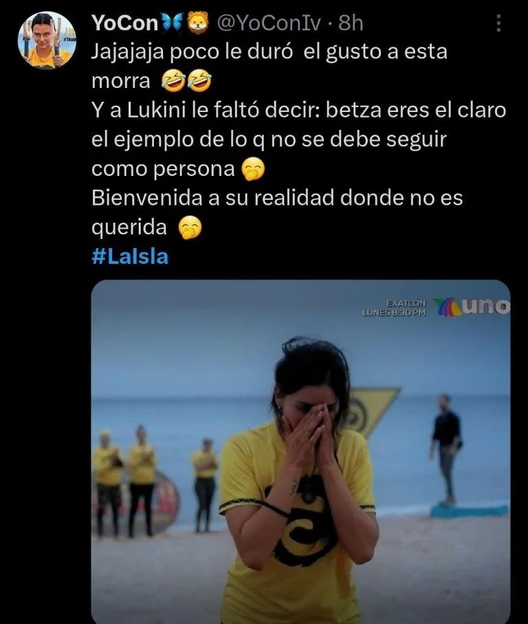 Posiblemente, ella esperaba que al igual que la mayoría del programa el público repudiara a Grajales, pero como los tiempos son distintos, los abusos ya no son aplaudidos como antes así que mientras la actriz de El Señor de los Cielos se volvió la favorita, Betsa en la gran villana y muy odiada, así que le saturaron sus cuentas con memes, así como mensajes en los que le dejaron claro que se convirtió en una mujer poco grata.