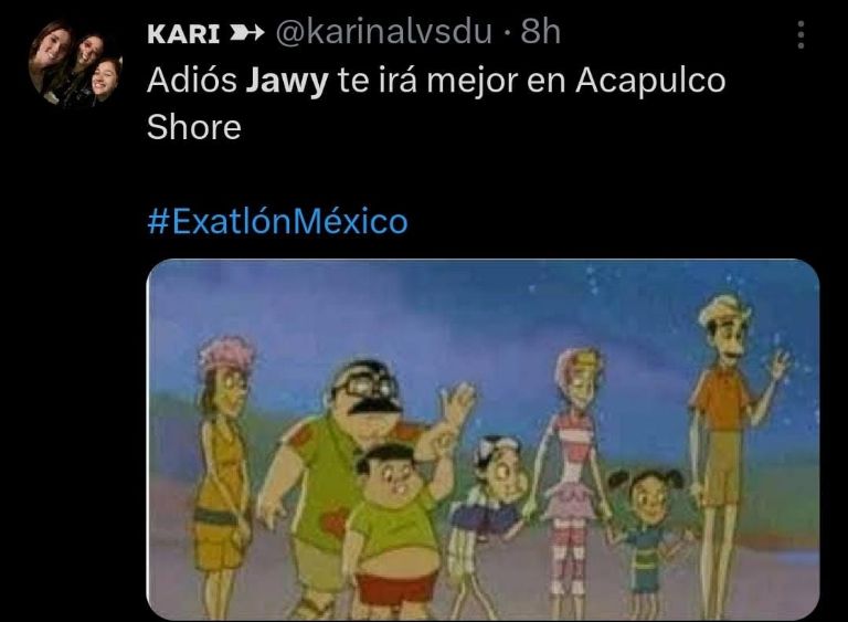 Ciudad de México.- El quinto ciclo de competencia cerró en Exatlón México con la eliminación de Jawy Méndez del equipo de Contendientes, lo cual generó una ola de reacciones en redes sociales, pues mientras algunos reconocieron el esfuerzo que hizo, la mayoría celebró que se encuentre de camino a casa y a través de memes se burlaron de su salida.
