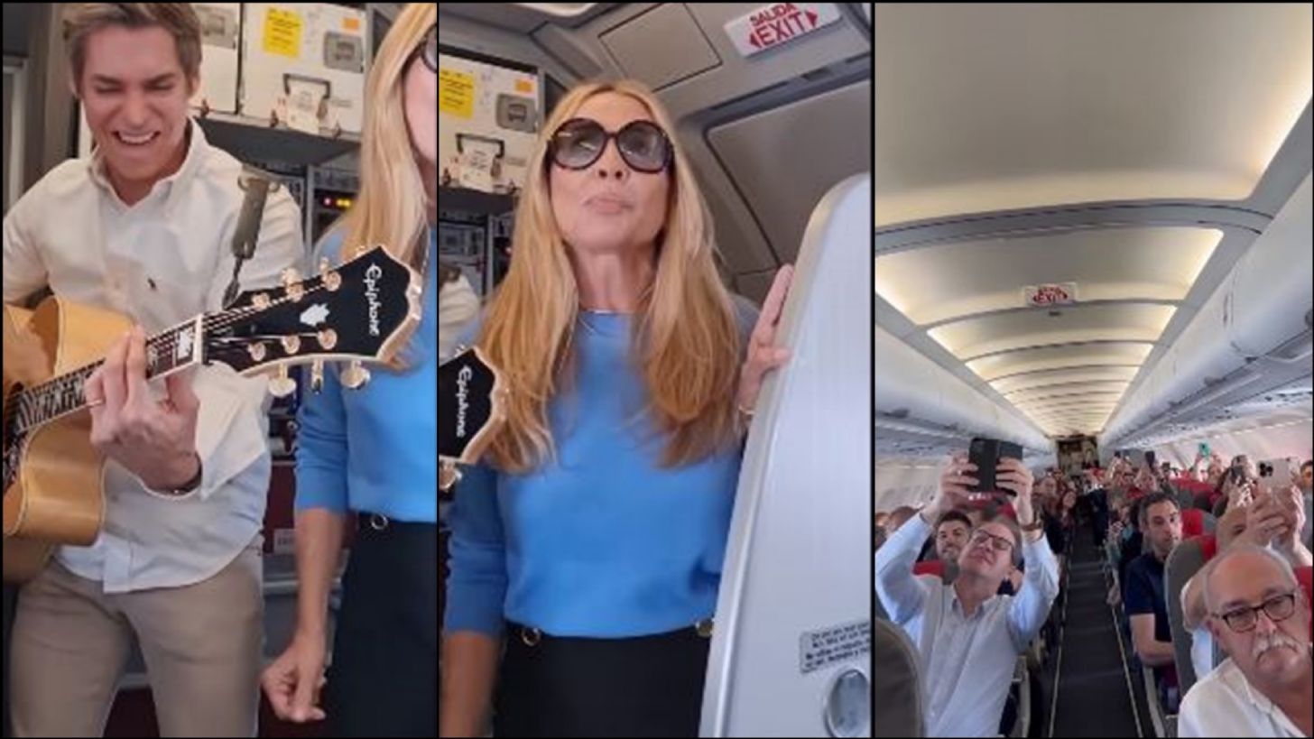Resulta ser que una de las aeromozas se percató de la presencia de los famosos, por lo que, amablemente, les pidió que interpretaran un tema, esto con la finalidad de calmar el estrés de la mayoría de pasajeros, por lo que los cantantes accedieron y pasaron al frente del avión y, aunque en un principio tanto Marta como Carlos lucían nerviosos, esta sensación terminó por disiparse conforme continuaban cantando.
