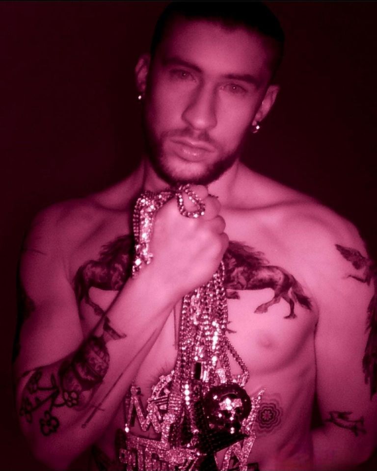 Debido a que Bad Bunny aparece con varias cadenas o 'bling bling' como se le conoce en el género urbano con los distintivos logos de figuras legendarias como Daddy Yankee, Don Omar, Héctor El Father, Tego Calderón, Arcángel, Wissin & Yandel, entre otros, explicó que esta acción se debe a que estos pilares del género urbano lo utilizaron a principios de su carrera.
