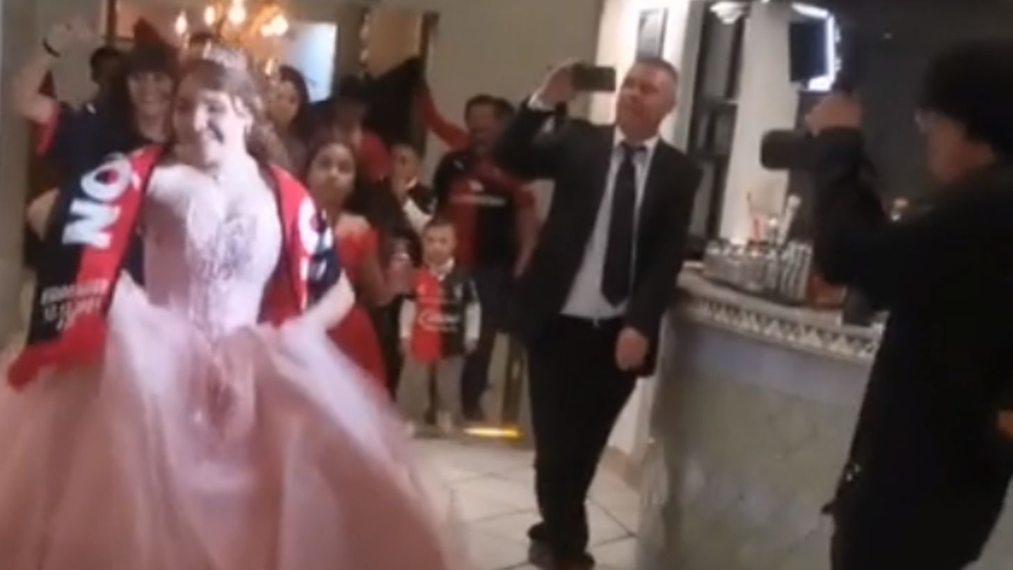 La menor decidió que su baile fuera toda una sorpresa y vaya que lo logró, pues los invitados no esperaban que saliera con la temática del Atlas. En el material subido a esta plataforma de videos cortos, se observa a Karol desfilar con su vestido rosa y una bufanda de los rojinegros, algo que provocó los aplausos de todos los asistentes en el salón de piensas, pues claro, no todos los días ven algo como lo que vivieron.