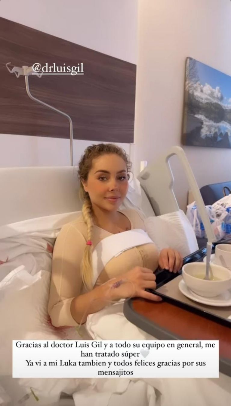 El encargado de hacerle el trabajo fue el doctor Luis Atilio Gil Pérez, quien ha operado a otras celebridades, así que desde la cama del hospital la rubia no pudo resistir para compartir que había cumplido su sueño, por lo que conectada y con su faja de recuperación, posó para presumir sus nuevas copas y prometió dar más detalles del proceso, lo que duró, el peso de sus implantes y demás.