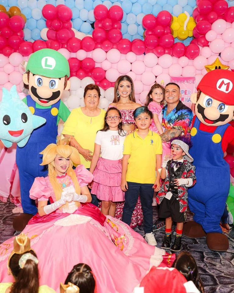 Ciudad de México.- El líder de La Trakalosa de Monterrey, Edwin Luna y su esposa Kimberly Flores echaron la casa por la ventana con una lujosa y divertida fiesta de cumpleaños para su hija Gianna, la cual se realizó este fin de semana rodeada de familiares y amigos que disfrutaron del gran evento al cual llegó disfrazada de la princesa 'Peach', dado que la temática fue del famoso videojuego de 'Mario Bros'.