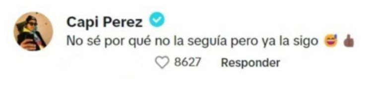 No sé por qué no la seguía pero ya la sigo”, escribió seguido de un emoji de preocupación y una mano con el dedo hacia arriba indicando que todo estaba bien.