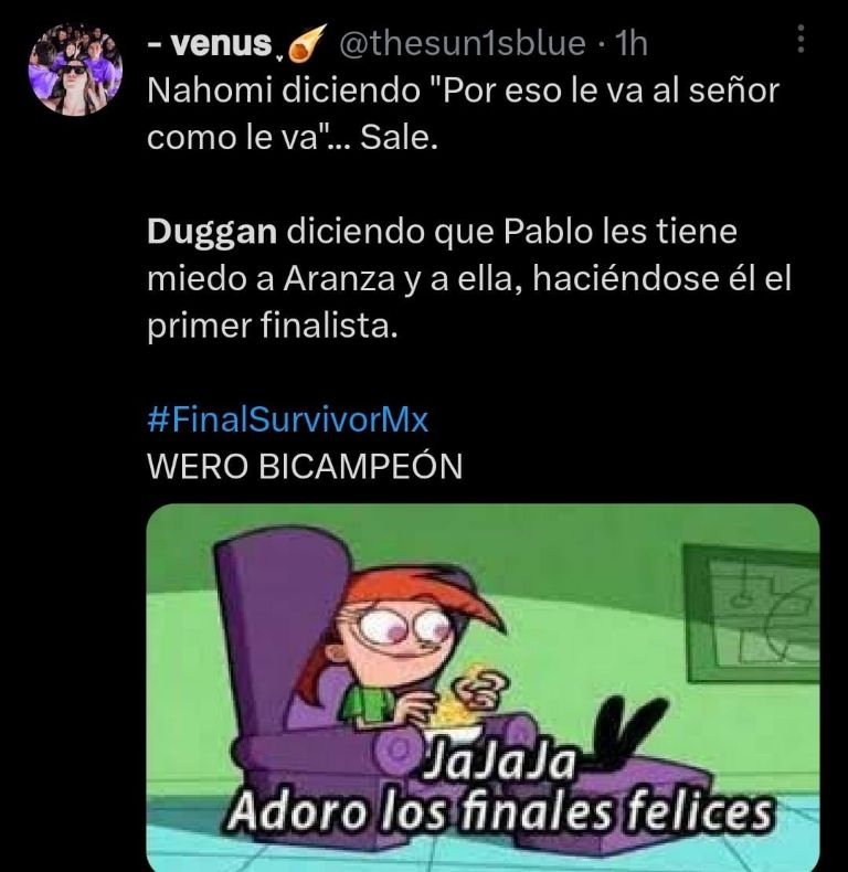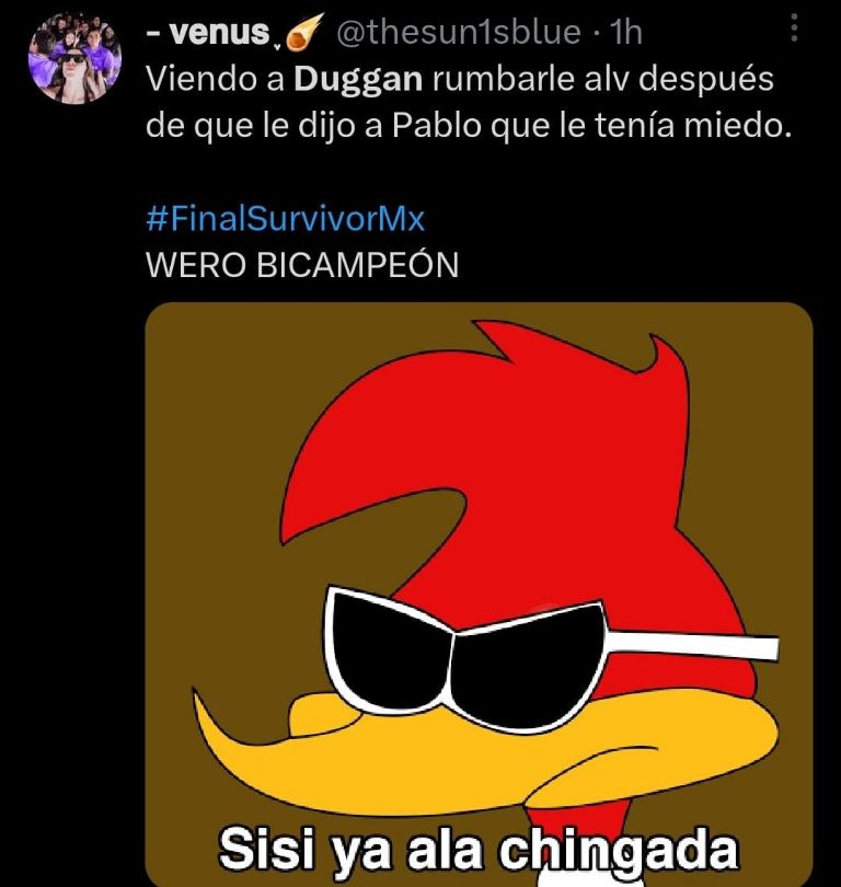 Por lo anterior, algunos usuarios no dudaron en recordar las palabras de Duggan para restregarle su derrota, destacando la lección de que no es bueno minimizar el trabajo de los demás, así que a través de ingeniosos memes celebraron a lo grande que Pablo Martí, quien logró cerrar la boca de todos sus detractores.
