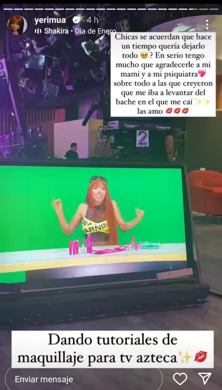 Desde hace poco más de un mes, Yeri Mua se encuentra tomando ayuda psiquiátrica y psicológica, misma con la que ha podido volver a tomar las riendas de su vida, decidió volver a la escuela con una carrera universitaria, también adoptó el deporte como parte de su vida y le han surgido importantes oportunidades que agradece.