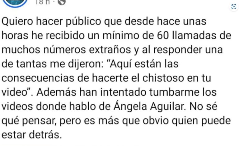En un video posterior, respondió a la supuesta solicitud de Pepe Aguilar de eliminar el clip. En él, cuestionó al cantante por intentar proteger la imagen de su hija y aseguró: "Aunque borre mi video, no cambiaría nada. A su hija nadie la quiere, es una persona muy desagradable". Según el influencer, la problemática con la imagen de Ángela Aguilar no se limita a un simple video en redes sociales, sino que va mucho más allá.