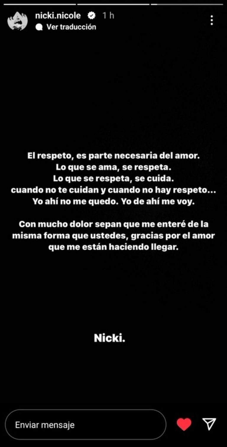 El mensaje de Sahar, traducido como "No creas todo lo que escuchas en los medios. Siempre hay 2 lados en una historia", sugiere que existen aspectos de esta controversia que podrían no estar siendo completamente comprendidos o representados. Aunque esta respuesta no ha sido directamente abordada por Nicki Nicole hasta el momento, la polémica continúa generando interés y especulaciones entre los seguidores de ambos artistas.