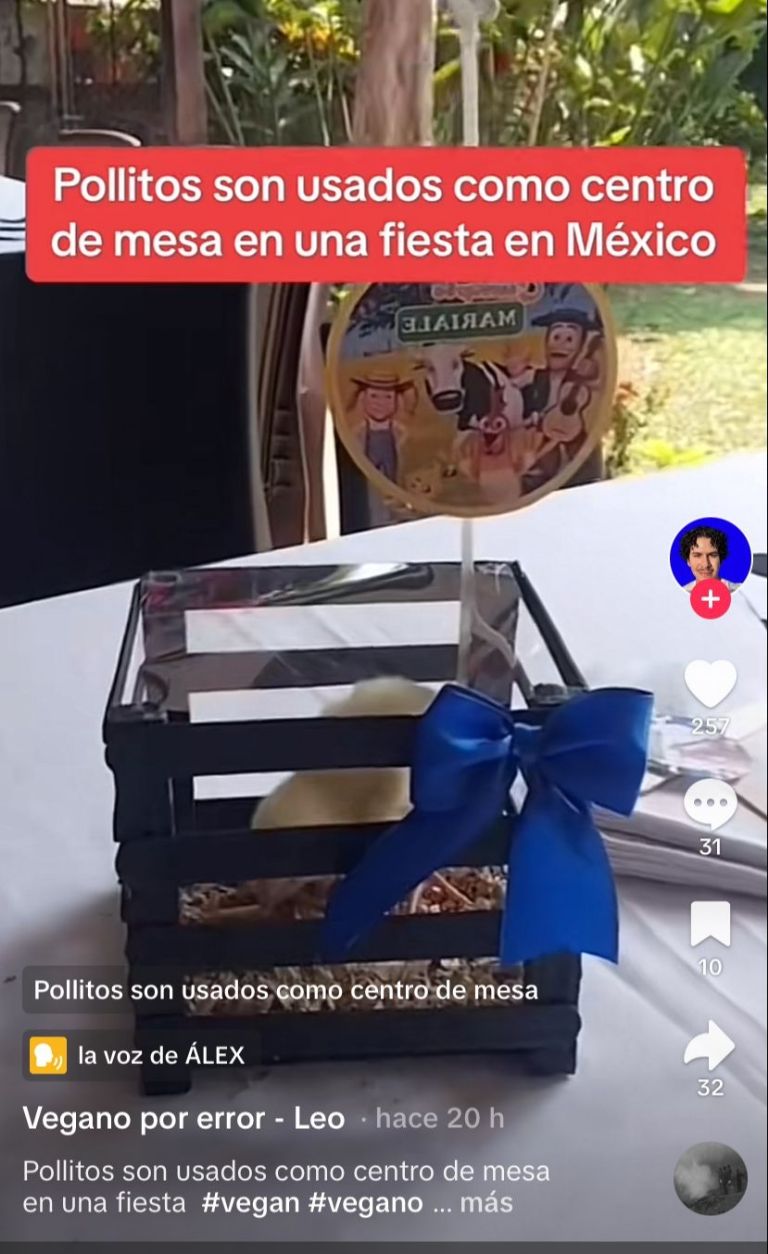 Ciudad de México.- Una reciente celebración en México ha generado controversia después de que se difundiera un video en la plataforma TikTok, mostrando cómo los organizadores de eventos utilizaron pollitos vivos enjaulados como parte de la decoración de la fiesta. El material audiovisual, que ha alcanzado miles de reproducciones y generado reacciones mayormente negativas, ha suscitado una ola de indignación en las redes sociales.