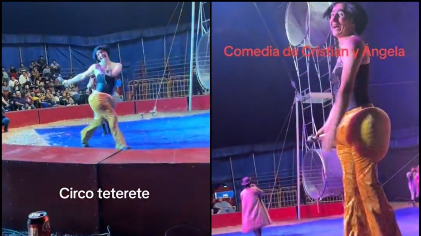 Todo ocurrió en el circo Teterete, sitio en el que los comediantes tomaron la escena en la que Ángela Aguilar y Christian Nodal cantaron el tema Dime cómo quieres, en el Auditorio Nacional, momento en el que se dieron tremendo beso en frente del público, lo que causó conmoción. El payaso que está disfrazado de Ángela resalta porque su pantalón tiene una especie de esponja con el que se resaltan sus caderas.