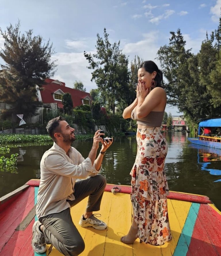 La pedida de mano tuvo como escenario un pintoresco lugar que todos los chilangos han visitado al menos una vez. Se trata de Xochimilco. Ambos se embarcaron en un romántico paseo sobre una trajinera y mientras floraban por las aguas, la media naranja de la famosa sacó la sorpresa que tenía guardada y formuló la tradicional pregunta: "¿Quieres casarte conmigo?". La celebridad se mostró impactada por la propuesta, tal parece que no se la esperaba. Sin embargo, reaccionó positivamente y de inmediato respondió con un: "Sí, acepto".