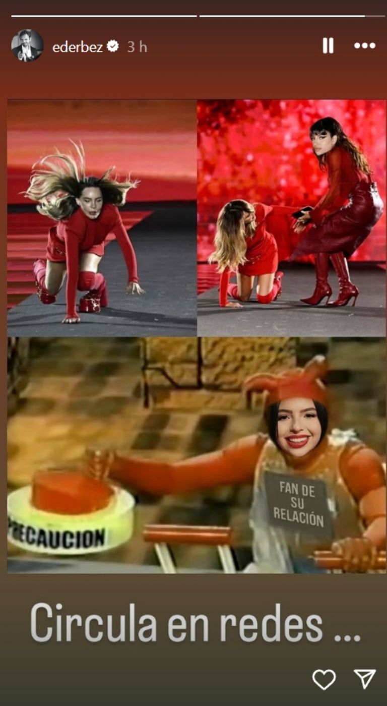 Se trata nada más ni nada menos que del 'Diablito', una figura que creó 20 años atrás para formar parte de su programa XHDRBZ. Si lo viste en televisión, sabrás que se encargaba de apretar un gran botón rojo en el infierno para provocar incidentes a los seres humanos. Así fue como lo culpó de la caída de 'Beli'. Lo más gracioso fue que además después compartió en sus redes un meme que alguien más diseñó en el que retrata Ángela Aguilar como el icónico y travieso personaje. Por si no fuera suficiente, incorporaron a Cazzu, quien intentaría ayudar a la cantante a ponerse de pie.