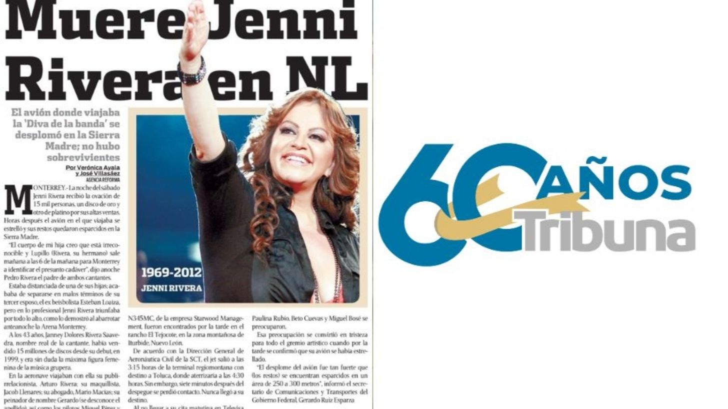 "Muere Jenni Rivera en NL… El avión donde viajaba la 'Diva de la Banda' se desplomó en la Sierra Madre; no hubo sobrevivientes", escribió esta casa editorial para dar a conocer la partida de la hermana de Lupillo Rivera. Dolores Janney Rivera Saavedra, nombre de pila de la cantante, murió durante un trágico accidente aéreo solo horas después de realizar la que fue su última presentación en la Arena Monterrey, en la ciudad de Monterrey.