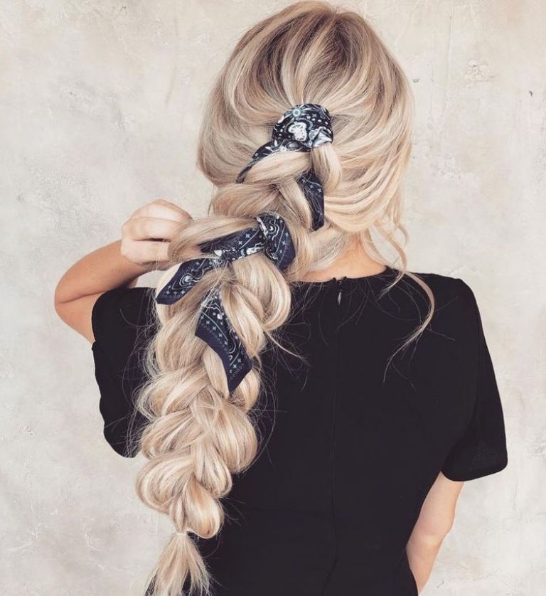 Intenta un peinado trenzado, pero añádele alegría y dale volumen con una bandana. Para ello un hermoso estilo cola de pez o trenza francesa. Este estilo de peinado es ideal para las que tienen el cabello largo, puede ser un poco rizado o lizo.