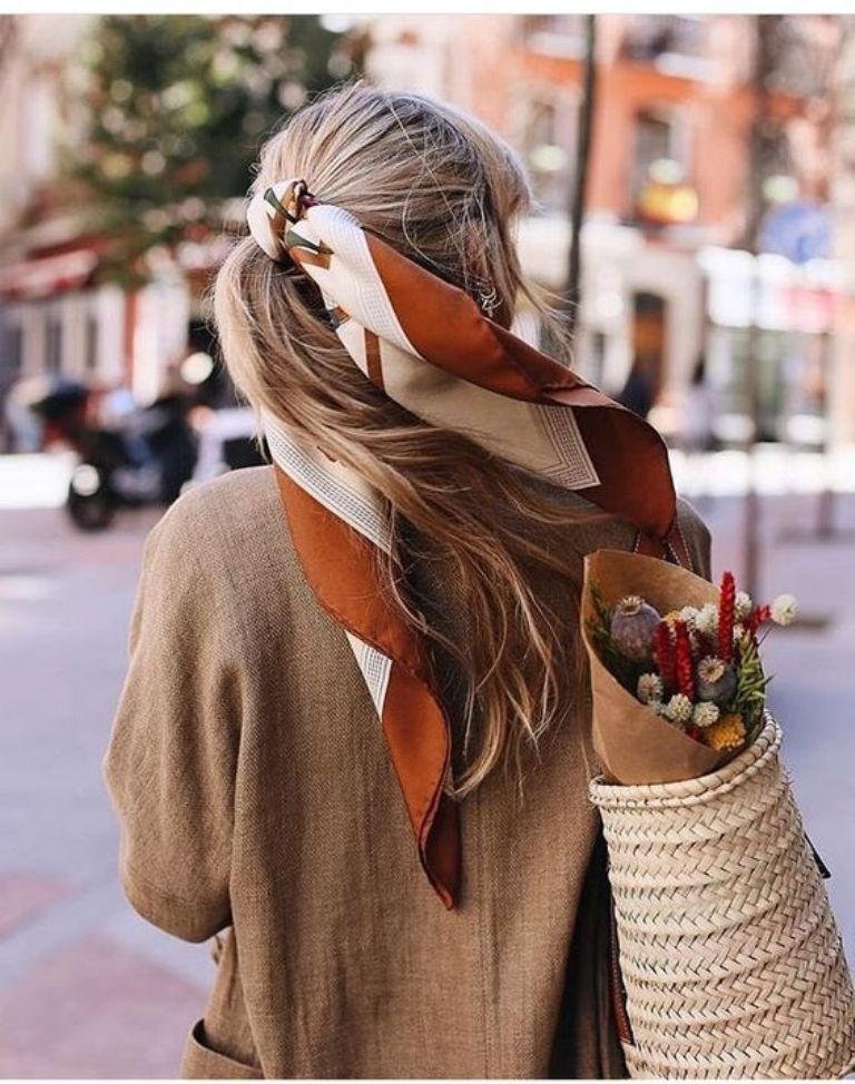 Los peinados con pañuelos son todo un clásico, un peinado hacia atrás con una cola moderadamente alta, pasarás de verte como una mujer cansada a una chica guapa y a la moda. Recuerda peinar tu pelo con suavidad. Y dale brillo con suero o aceite.