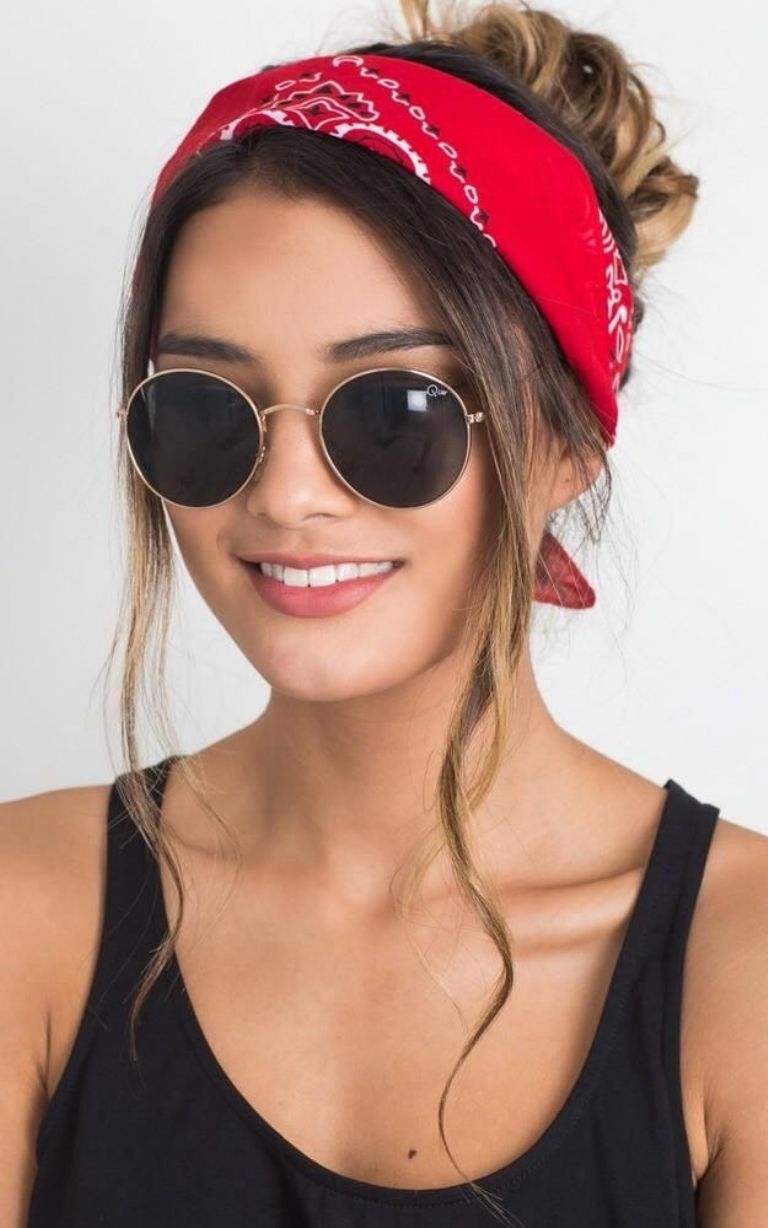 Las bandanas te darán una apariencia voluminosa que necesitará tu peinado recogido, no te olvides peinar antes tu cabello y mantenerlo limpio para que quede perfecta. Puedes dejar el flequillo suelto para verte más juvenil y a guapa.