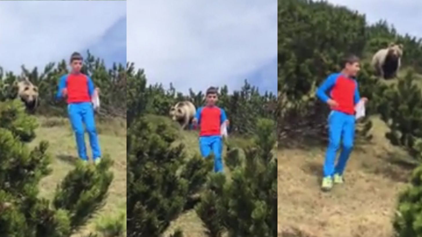 Malga Nuoa, Italia.- Recientemente se ha viralizado en Italia el momento en el que un padre grabó el momento en el que su hijo, un niño de 12 años, está siendo perseguido por un gran oso pardo, del cual por fortuna ha logrado salvarse al mantener la calma y no salir huyendo.