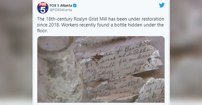 Según medio locales, en el suelo de hormigo se encontró una botella de vidrio, en ella estaban dos cartas que datan de 1917, además, había 4 monedas del periodo de la Guerra Civil estadounidense.