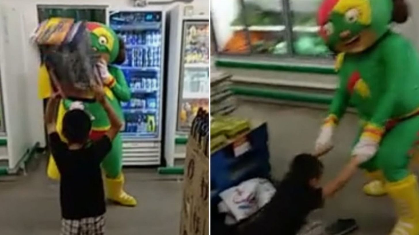 Probablemente hayas visto muchos videos de peleas en supermercados, pero pocas tan graciosas como esta. A partir de ahora piensalo dos veces antes de decidir enfrentarte a una botarga.