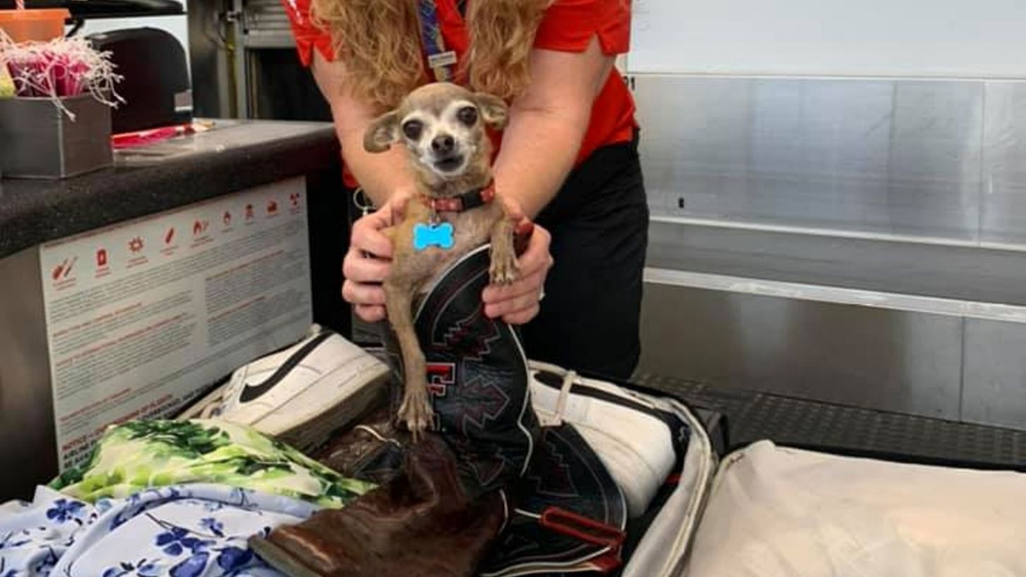 Sabes que va a ser un viaje épico a Las Vegas cuando llegas al aeropuerto, tus maletas pesan seis libras más y de ahí sale tu Chihuahua dentro de una bota", compartió el sorprendido dueño a través de Facebook.