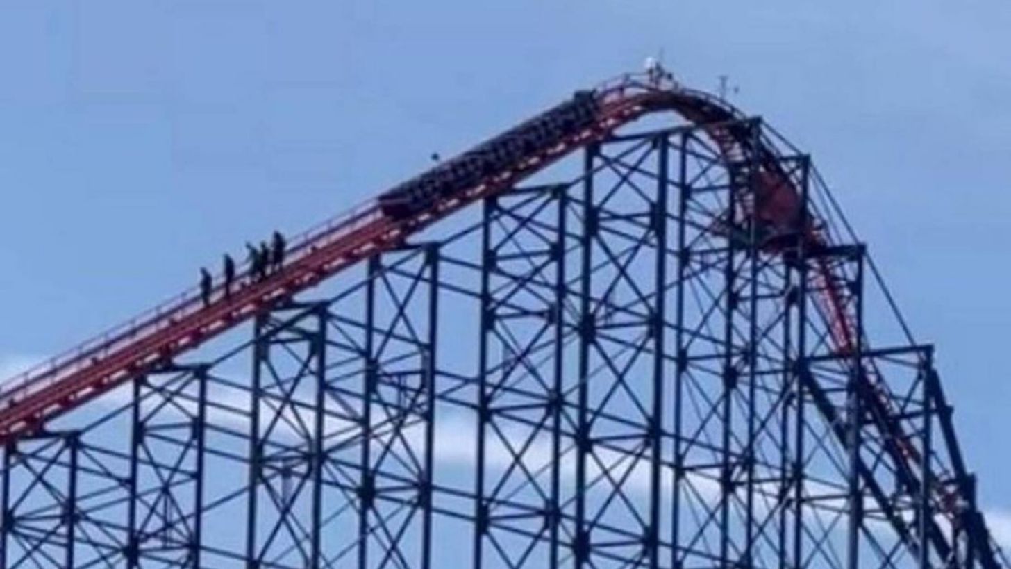 Reino Unido.- Como si se tratara de una película de terror, un grupo de visitantes que se encontraba en un parque de atracciones en la ciudad Blackpool, Inglaterra, pasó un momento amargo al quedarse atorados en la cima de la montaña rusa denominada 'The Big One' (La grande), por lo que para ser rescatados tuvieron que descender a pie.
