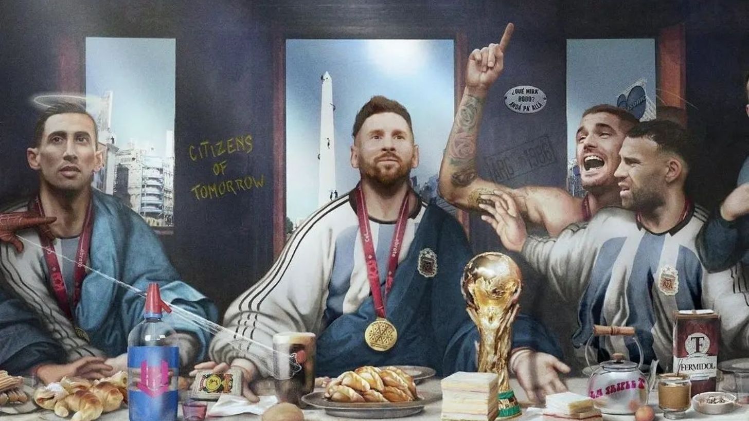 En las plataformas digitales se ha hecho popular ver los tatuajes que los fanáticos de Argentina se hicieron de Messi besando la copa del mundo, pues ahora el estudio denominado Citizens of Tomorrow ha mostrado su versión de La última cena, obra hecha por Leonardo Da Vinci donde muestra uno de los pasajes bíblicos más relevantes, es decir, aquel donde Jesús comparte la mesa con sus 12 apóstoles y él se muestra al centro.