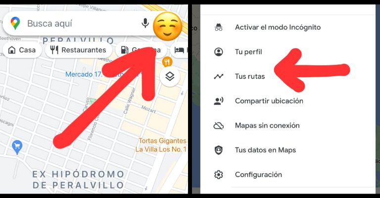 En primer lugar, abre la aplicación y selecciona la foto de perfil. A continuación se desplegará un menú, deberás dar un click sobre la opción "Tus rutas", es fácil de identificar porque son tres puntos enlazados por un rayo.