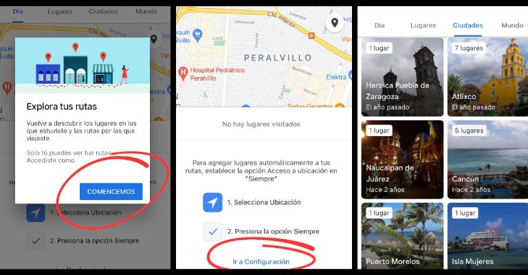 En seguida aparecerá un pequeño recuadro con la leyenda "Explora tus rutas", resta pulsar en "Comencemos". El siguiente paso consistirá en otorgarle el permiso de rastreo desde el panel de configuración de tu celular.