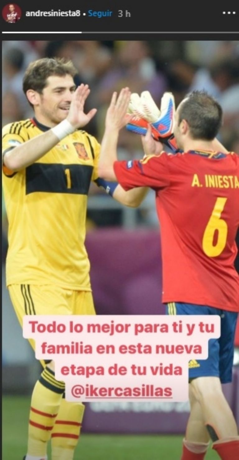 Tras el anuncio de su retiro de las canchas, Iker Casillas fue honrado por LaLiga, que le dedicó un video de despedida y sus mejores atajadas, así como por algunos excompañeros de club y selección, como Iniesta y Sergio Ramos.