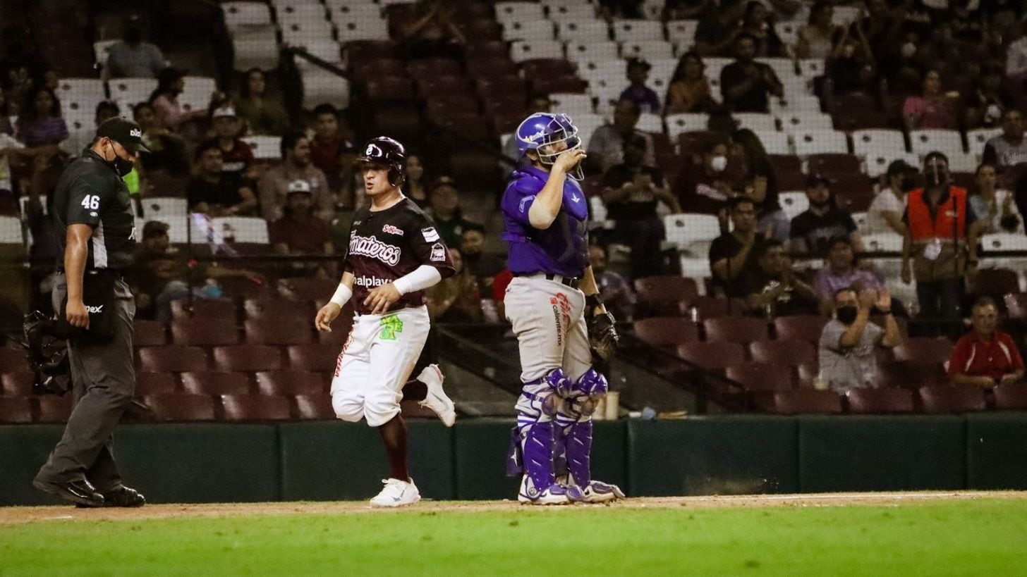 La carrera número tres de los sinaloenses cayó en la séptima entrada cuando Dairon Blanco sacó un infield hit a la tercera base, lo que aprovechó Diego Madera para descolgarse a la registradora.