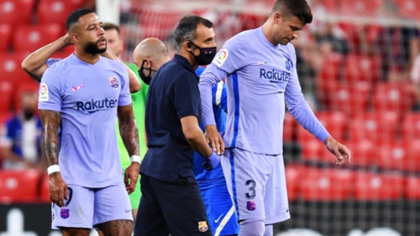 Bilbao, España.- Las malas noticias no paran en el FC Barcelona, pues la tarde de este sábado 21 de agosto durante el partido en contra del Athletic de Bilbao en el Estadio San Mamés, el defensa español Gerard Piqué salió lesionado, lo que encendió las alarmas en el equipo.
