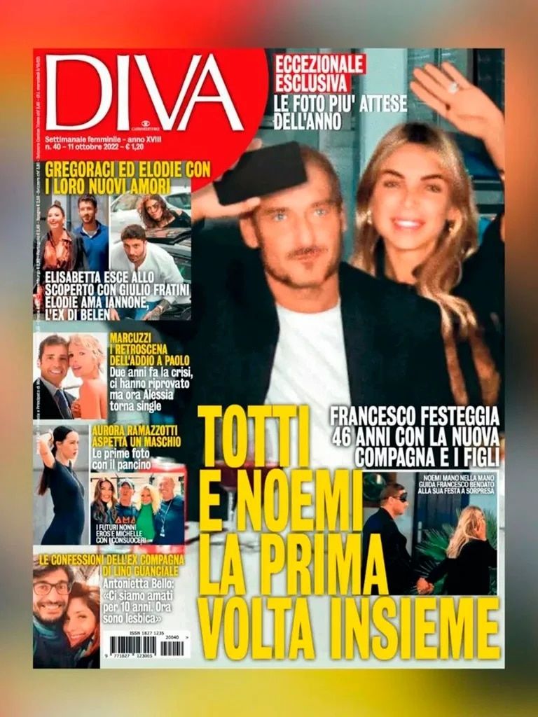 Una serie de fotografías fueron compartidas en la revista italiana de espectáculos Diva e Donna, y ahí se puede observar a Totti festejando su cumpleaños 46, el pasado 27 de septiembre, en un conocido restaurante de Roma. Aunque el futbolista ya había revelado que estaba en una relación con la economista, nunca habían sido fotografiados juntos, sobre todo por los asuntos legales alrededor de su separación.