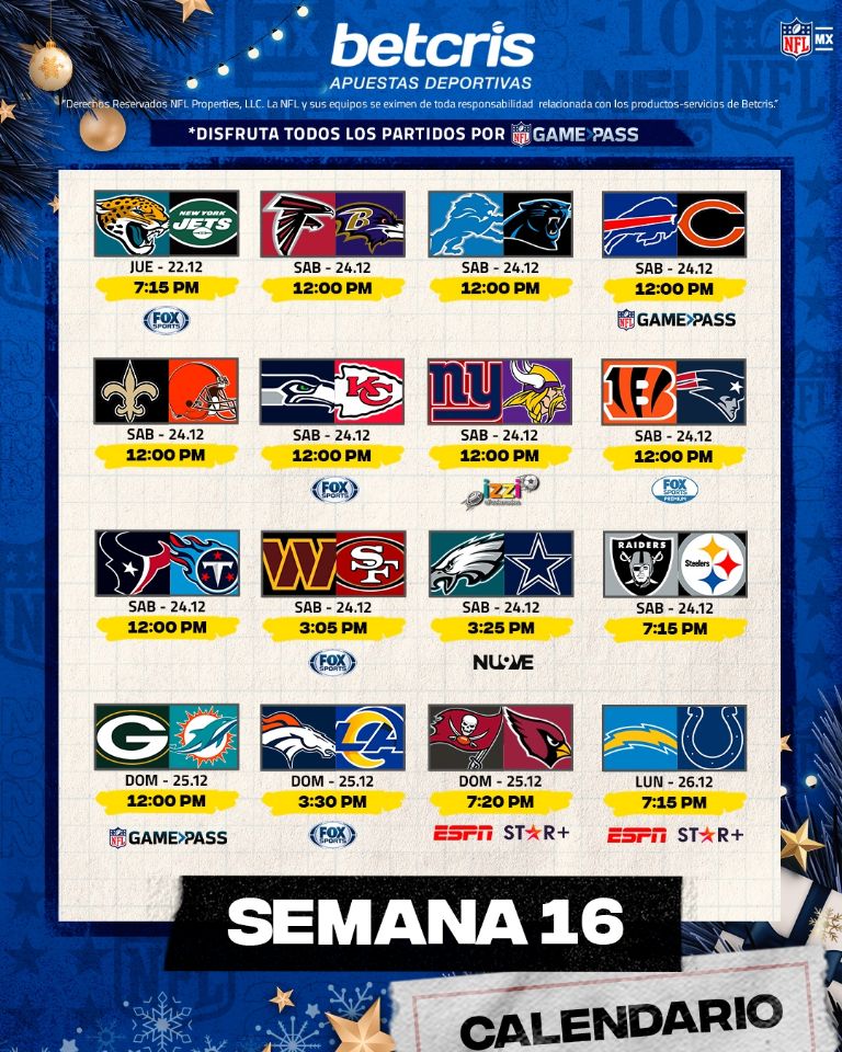 Horario y transmisión de la NFL el 25 de diciembre