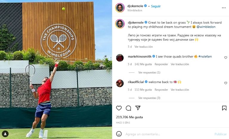 Djokovic aseguró que su mente está enfocada en el torneo inglés, que podría convertirse en su título grande número 21 en la carrera, lo que afirmó "es una motivación adicional para jugar bien aquí". El serbio agregó que su posición en el ranking de la ATP ya no es una prioridad para él y que perder puntos afectará más a otros colegas que a él, aunque le quitarán dos mil puntos por la decisión del organismo de no entregar puntos ante la prohibición de Wimbledon para que compitan tenistas rusos y bielorrusos.