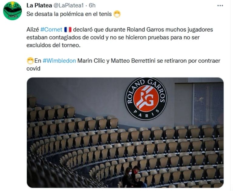 París, Francia.- Después de que la organización de Wimbledon separara a los tenistas Marin Cilic y Matteo Berreti al dar positivo a Covid-19, la atleta francesa Alize Cornet soltó una bomba al revelar que en el torneo de Roland Garros, hubo un acuerdo entre jugadores para no realizarse pruebas que detectaran que estaban contagiados con el virus, aun a sabiendas de que estaban enfermos, para poder continuar con su participación en el certamen de superficie de arcilla.